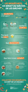 Les biodéchets représentent environ un tiers des ordures ménagères non triées en France alors qu’ils pourraient être valorisés. Depuis le 1er janvier 2024, le tri à la source des biodéchets a été généralisé et concerne tous les professionnels et les particuliers. L’objectif ? Donner une nouvelle vie aux biodéchets !